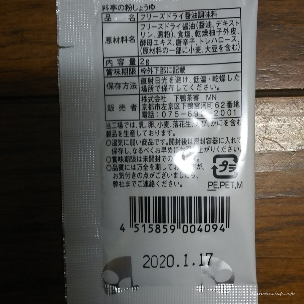 下鴨茶寮の粉しょうゆの成分