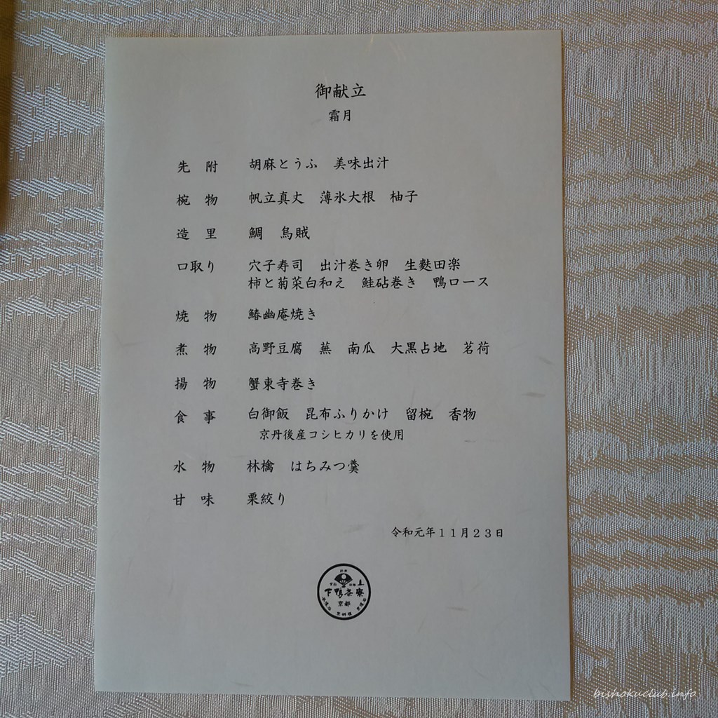 下鴨茶寮の御献立(牛乳アレルギーの私用です。)