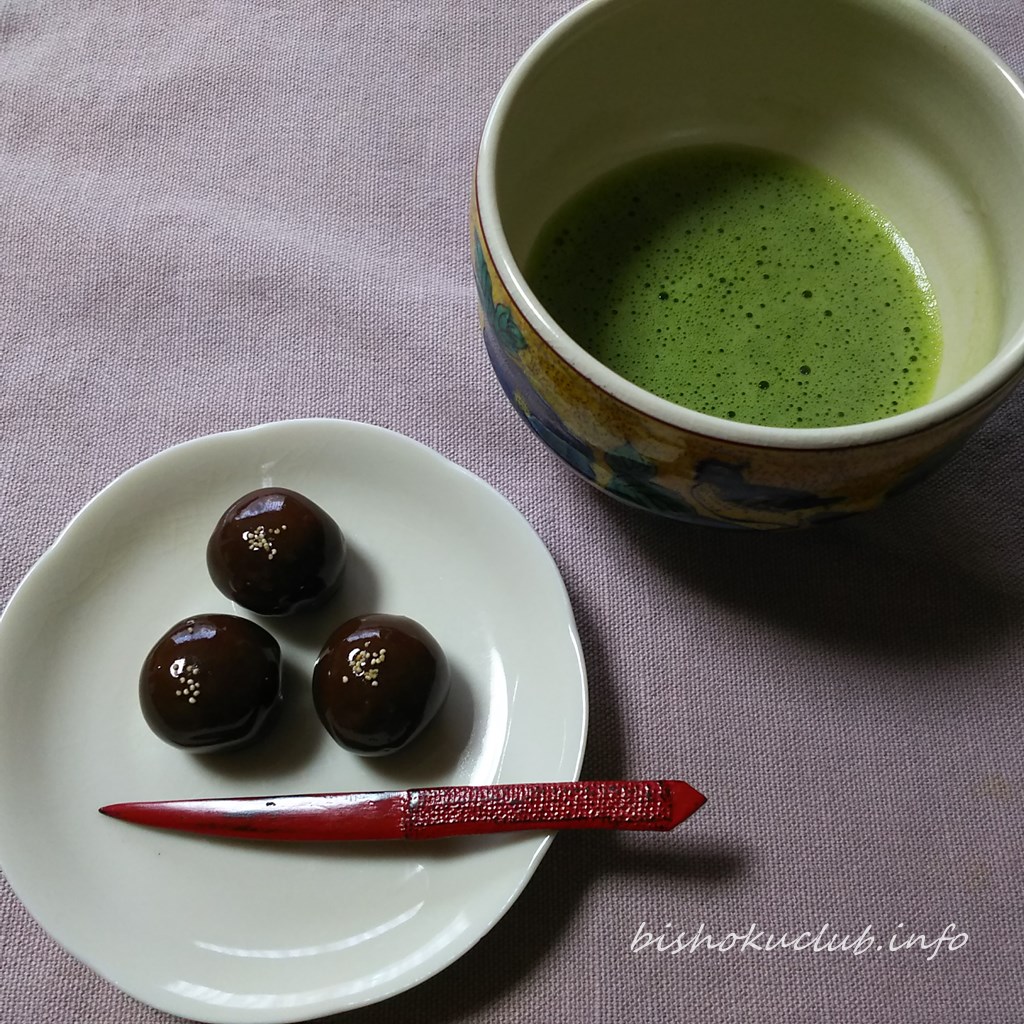 亀屋良長の烏羽玉と醒ヶ井の水でたてた抹茶