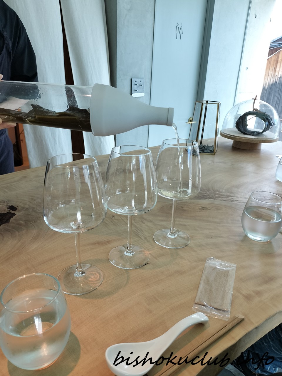 テイスティングのグラスに昆布水をそそぐ